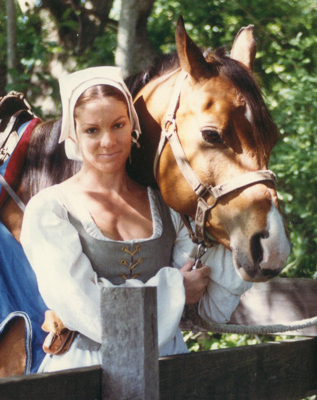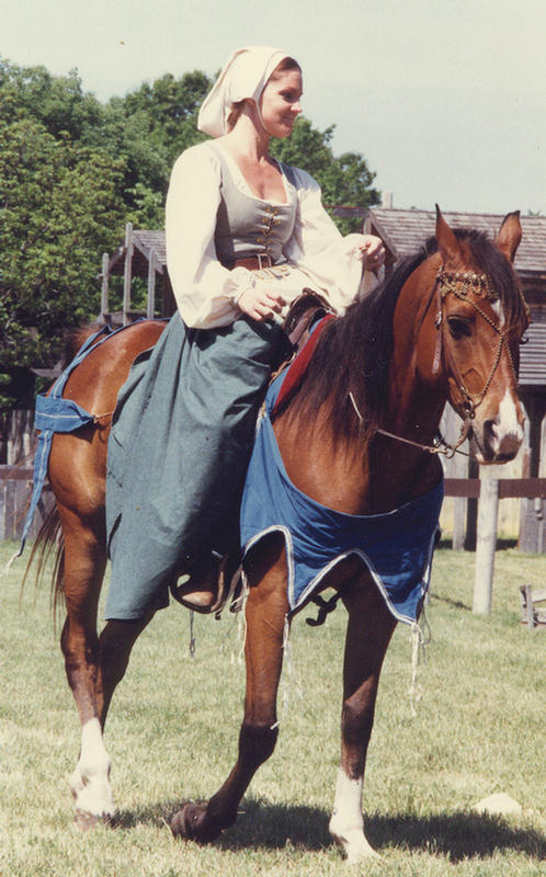 English Civil War riding habit, during equestrian gaming. |