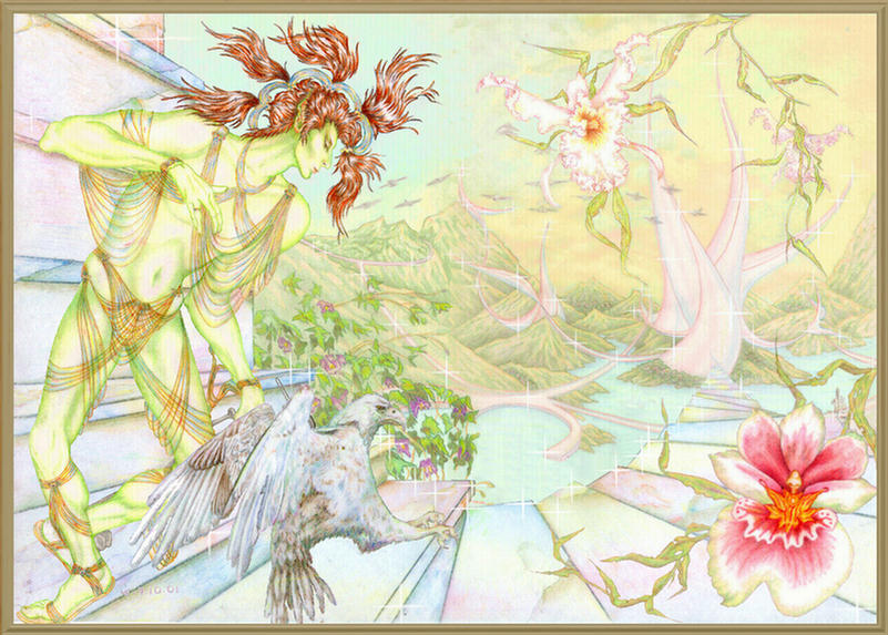 Manwë draped in gauze, or strings,